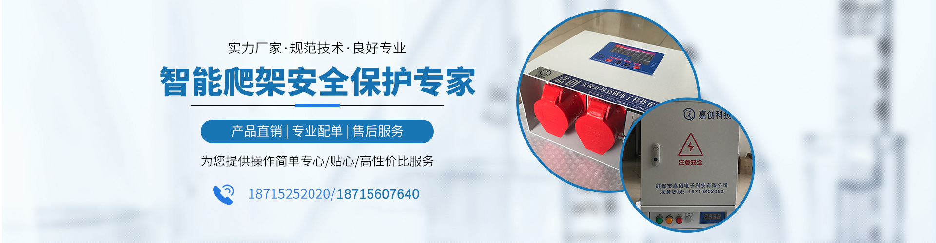 嘉創(chuàng)電子簡(jiǎn)介嘉創(chuàng)電子科技有限公司地處環(huán)境優(yōu)美、風(fēng)景秀麗的安徽蚌埠市,鄰近中國(guó)建筑玻璃產(chǎn)業(yè)基地,緊靠329國(guó)道、京滬高鐵、合徐高速、寧洛高速,京臺(tái)高速地理位置良好。嘉創(chuàng)電子科技有限公司是建筑施工附著式升降腳手架控制系統(tǒng)等產(chǎn)品專業(yè)研發(fā)、生產(chǎn)加工、銷售的公司。公司成立于2019年3月,是安徽經(jīng)倫公司改變重組一新的公司,廠房面積約450m2 ,人員20余人,日產(chǎn)能80~100臺(tái)分控箱,其附著式升降腳手架控制系統(tǒng)符合CECS 373-2014《附著式升降腳手架升降及同步控制系統(tǒng)應(yīng)用技術(shù)規(guī)程》并取得《附著式升降腳手架同步控制系統(tǒng)檢驗(yàn)報(bào)告》。現(xiàn)在原老公司一、二代產(chǎn)品基礎(chǔ)上優(yōu)化升級(jí)為新的一型、二A型、二B、三...